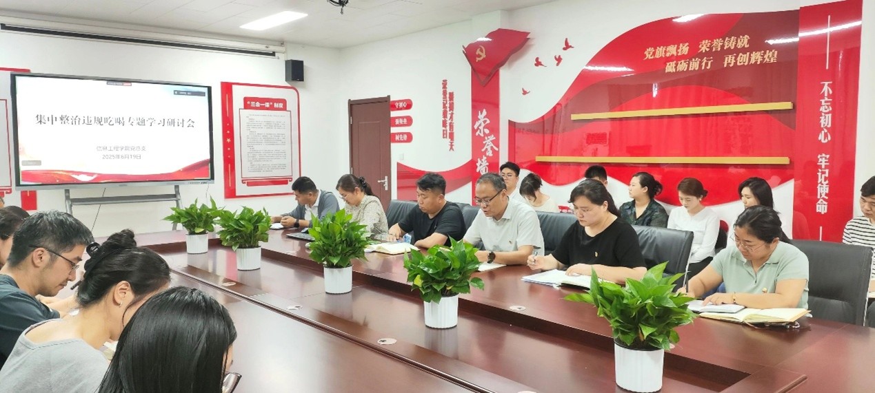 2025年6月19日,党委委员、副校长黄振中以普通党员身份参加leyu乐鱼官方网站党总支集中整治违规吃喝专题学习研讨会,并围绕集中整治违规吃喝问题与leyu乐鱼官方网站全体党员干部开展专题谈话。