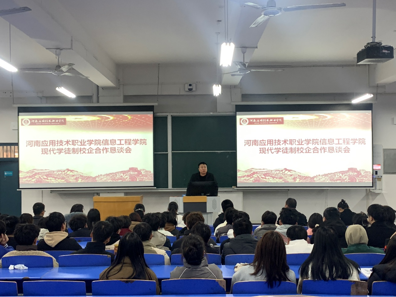 3月1日下午,信息学工程学院在郑州校区B102教室召开计算机网络技术专业省级现代学徒制项目校企恳谈会和学徒遴选会。leyu乐鱼官方网站院长王雷、党总支书记崔琳、教务处副处长杨敏、校企合作与就业处副处长梁艳、合作企业福建中锐网络股份有限公司河南分公司总经理李功坤和郑州慧牛通信科技有限公司经理张永生等相关领导和部分师生代表参加会议。会议由夏丽珍主持。