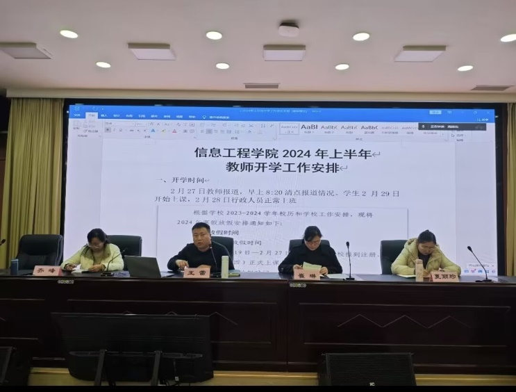 党总支书记崔琳对新学期的党群建设、就业服务、值班安排等工作进行了部署,她强调,在学校实施“十四五”和争创“国双高”申报的关键之年,本院教职工要以精益求精的作为、踏实肯干的精神,投入到新学期各项工作中,确保2024年工作起稳步、开新局。