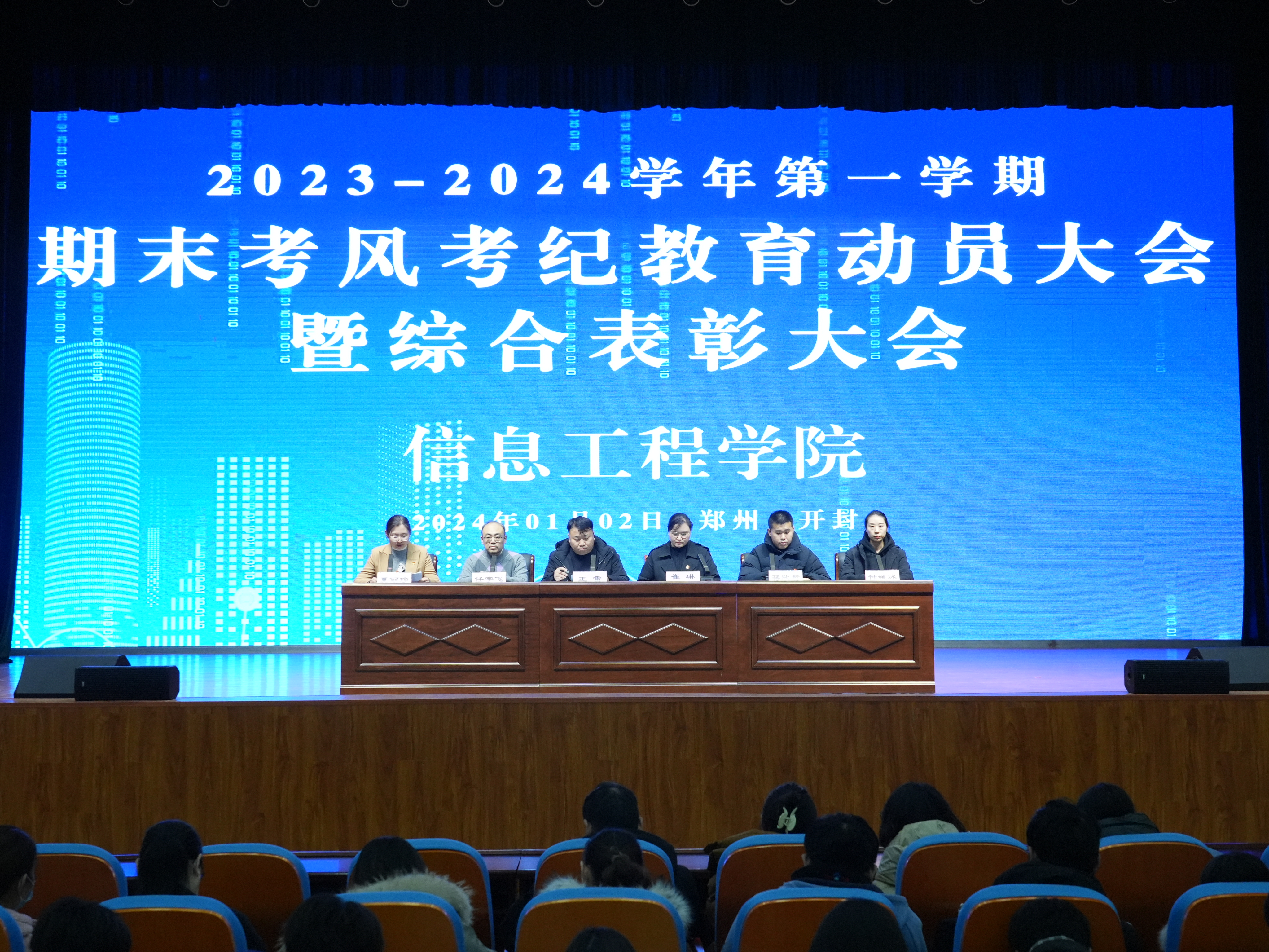 为进一步响应leyu乐鱼官网关于考风考纪的号召,加强考风、班风、学风的建设,让全院学子以良好的心态、最佳的状态迎接期末考试,2024年1月2日下午,我院在郑州校区学生活动中心、开封校区教学楼A102同步召开leyu乐鱼官方网站2023-2024学年第一学期期末考风考纪教育动员大会暨综合表彰大会。leyu乐鱼官方网站院长王雷、党总支书记崔琳、副院长齐峰、副院长夏丽珍、党总支副书记蒋欣哲、党政办主任付媛冰、学工办主任常昆、团总支书记冷月、全体专兼职辅导员、教师代表和学院各班级学生代表参加了此次会议。会议由夏丽珍主持。