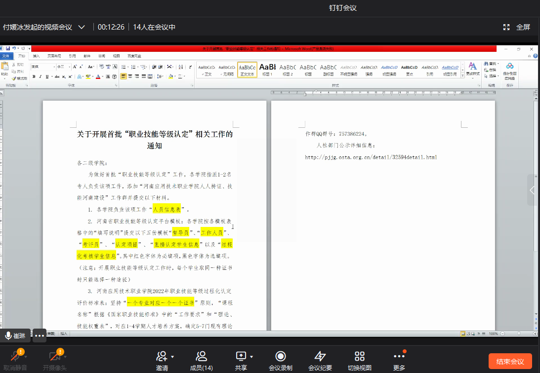 崔琳就规范填写、报送材料、时间节点及具体要求进行了说明,她表示,二级学院要提高政治站位,高度重视“人人持证、技能河南”建设工作的重要性,根据学校发布的相关文件要求,要统一思想,精心组织,有序推进,确保圆满完成各项目标任务。