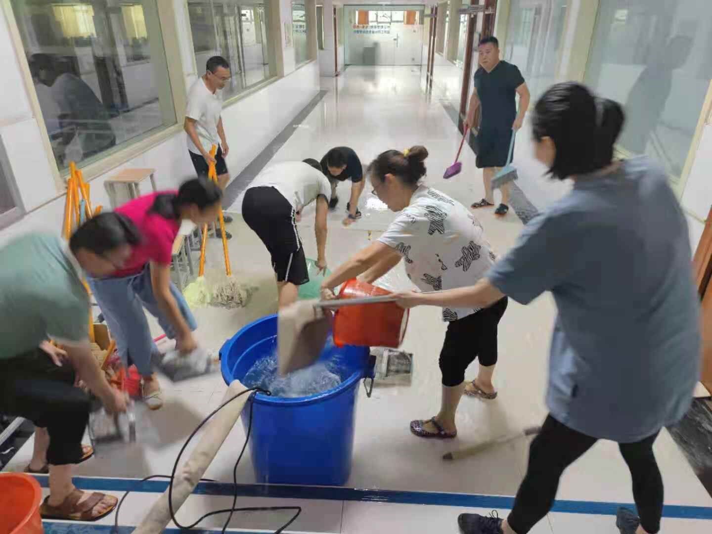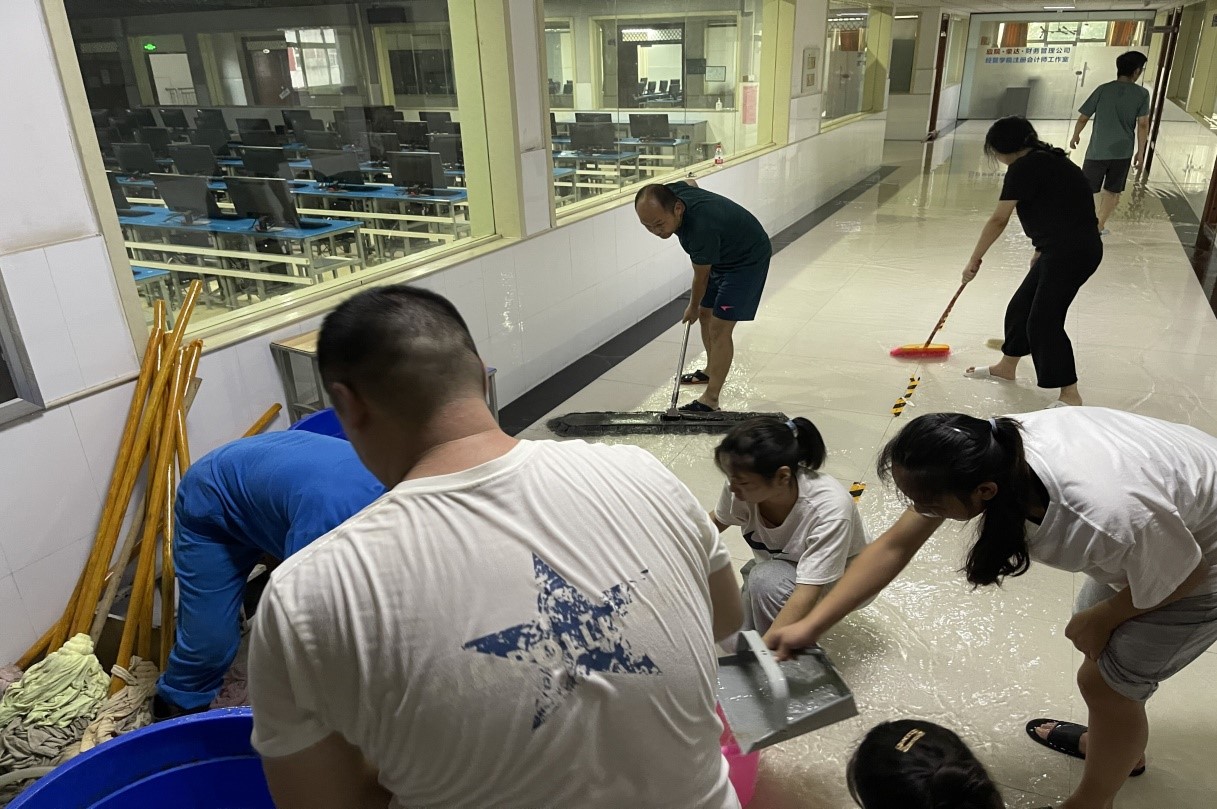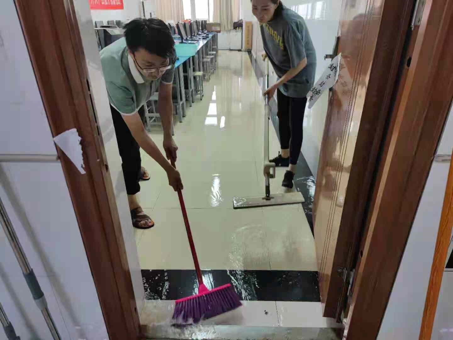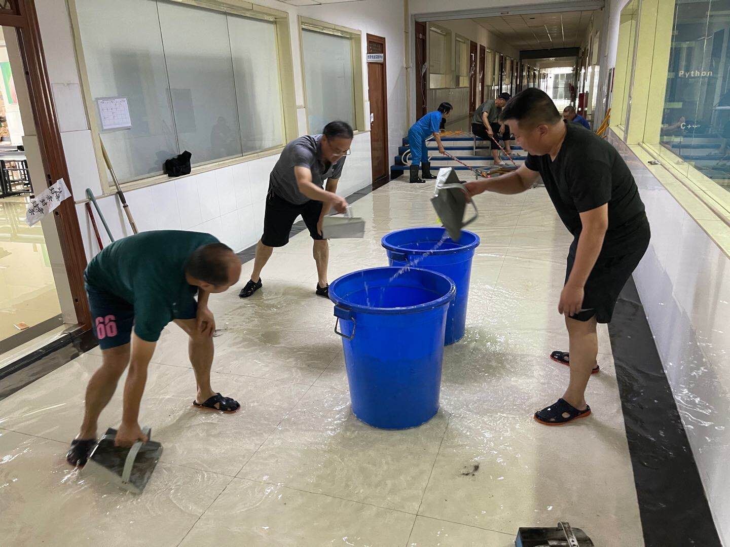 2012年7月21日,为了落实《河南应用技术职业学院关于切实做好2021 年学校汛期安全工作的紧急通知》,leyu乐鱼官方网站相关领导及实训室负责人在暴雨过后克服困难到校进行实训室防汛、电气线路安全检查,在巡视中发现2号实训楼4楼东侧走廊积水,两侧实训室及教师休息室地面不同程度浸水。 发现积水情况后,leyu乐鱼官方网站立刻启动应急机制,积极请示汇报并协同后勤处、教务处、体育教学部、经济管理学院、化学工程学院等部门协调组织积水清理工作,第一时间组织leyu乐鱼官方网站党员及骨干教职员工成立专项工作小组到校进行集中排涝,同时引入“排水处理公司”利用“潜水泵”等设备进行专业化处理。经过大家的不懈努力,7月23日上午胜利完成排涝任务。大家在排涝工作中发扬吃苦耐劳和艰苦奋斗精神,各部门领导率先垂范,献计献策,提高了工作的效率。参与任务的老师们在工作中不断摸索并改进清理手段,总结出“PVC挡板推浪聚水”等有效清理积水的方法。暴雨洪水无情、家园亲人暖心,让我们心系应院,护家爱家,同心戮力,共同打赢家园保卫战