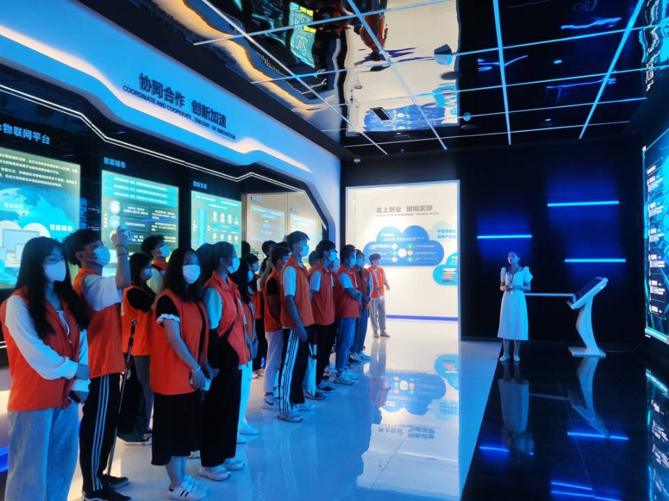 随后,我院指导教师带领同学们实地考察了入驻企业的办公环境、运作模式、发展情况及社会效益等,就建立实习基地相关事宜,基地的工作人员向大家进行了详细的介绍,从展示的视频中,同学们对基地有了初步的了解;随后,通过对智能家居、智能制造等应用场景的参观学习,使同学们对计算机、大数据及物联网的应用有了全面的认识和了解。