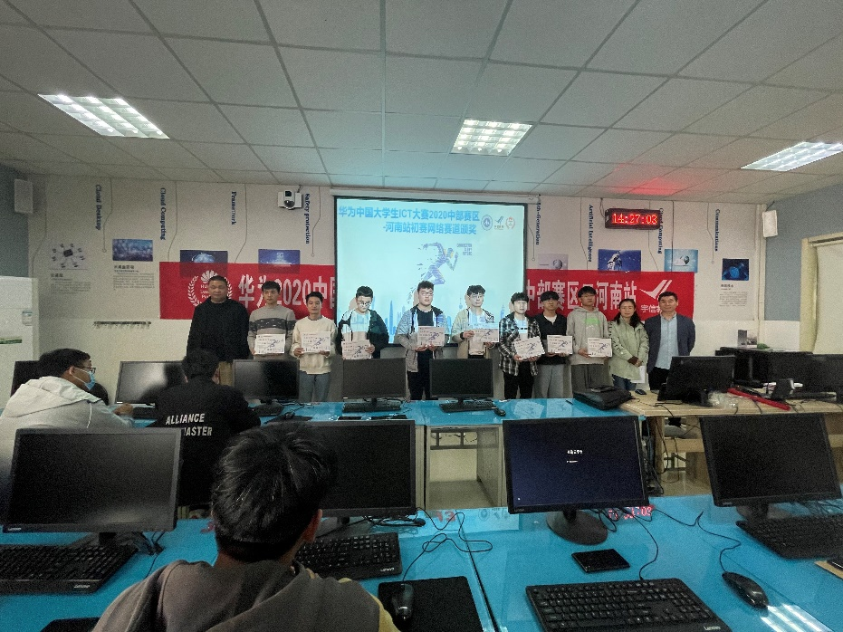4月8日下午,leyu乐鱼官方网站在E420举办《2020华为中国区大学生ICT大赛中部赛区二——河南实践赛网络赛道》颁奖仪式,本次仪式由网络通信技术教研室主任郭璇主持,我院网络通信技术教研室全体教师、华为HALP郑州市宇信职业培训中心市场部总监王静晓,经理冯欣欣及19级参赛学生到场参加。