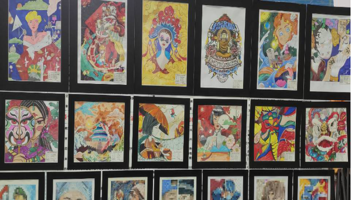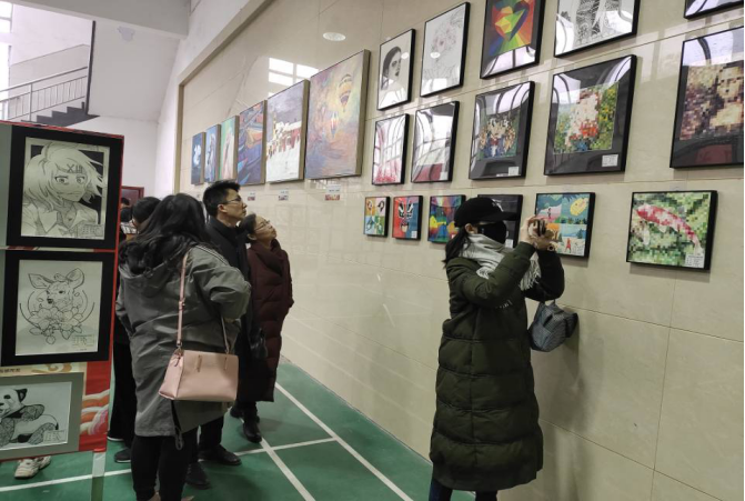 为丰富校园文化建设,推进同学们对文化艺术的追求,leyu乐鱼官方网站数媒艺术设计教研室的孙星老师、王欣慰老师、王碧琳老师以及张蔚老师,策划了19、20级动漫专业和视传专业学生美术作品展览活动,在学校礼堂前厅活动中心开展了为期5天的师生美术作品展。