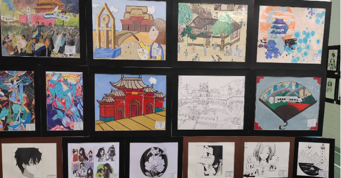 这次活动同学们分工合作,积极准备,筛选出了众多优秀作品。这次展览涵盖油画、丙烯画、水粉画、水彩画、素描、线描,六个画种,内容题材包含抗疫精神、社会主义核心价值观、河南地方文化特色、民俗文化等,具有探索精神和时代精神。