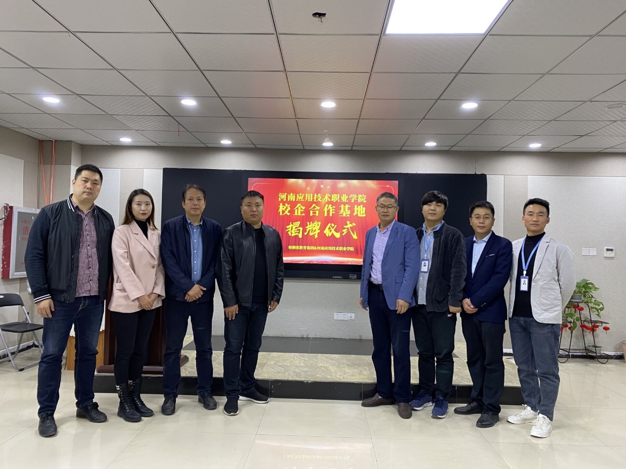 2020年11月9日,河南梧桐花科技有限公司与河南应用技术职业学院校企合作基地揭牌仪式在河南梧桐花科技有限公司隆重举行。河南应用技术职业学院leyu乐鱼官方网站院长王雷、河南应用技术职业学院教务处副处长王勇、河南应用技术职业学院leyu乐鱼官方网站团总支书记赵源、河南应用技术职业学院leyu乐鱼官方网站教工办主任付媛冰、河南梧桐花教育集团董事长周晓东、河南梧桐花科技有限公司校企合作中心主任郭亚迪等人参加仪式。