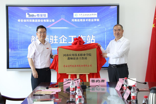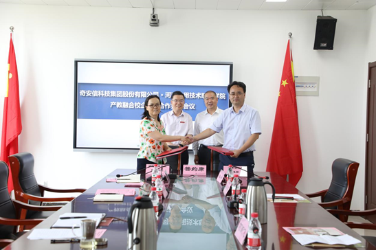 7月20日,河南应用技术职业学院与奇安信科技集团股份有限公司(以下简称奇安信集团)产教融合校企战略合作签约仪式在郑州校区办公楼会议室315隆重举行。奇安信集团副总裁何新飞、助理总裁魏雨露、教育行业部区域总监陈昱豪、河南教育销售总监齐壮、河南教育售前经理王超,学校校长范晓伟、副校长陈君丽、教务处处长黄振中、招生就业处副处长李向民、leyu乐鱼官方网站院长王雷、副院长崔琳等其他相关领导及教师代表出席签约仪式。