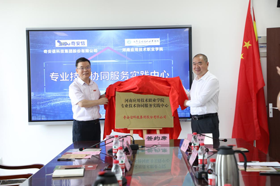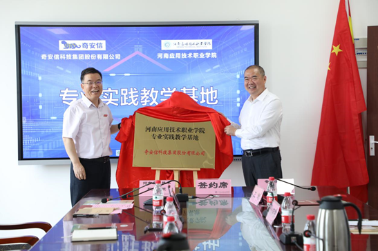 随后,河南应用技术职业学院与奇安信集团双方领导共同进行教师驻企工作站、专业实践教学基地、专业技术协同服务实践中心授牌仪式并最终全体参会人员合影留念。
