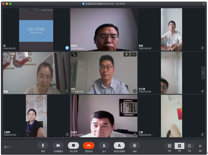 2020年6月9日下午,根据学校党委安排,leyu乐鱼官方网站党总支东西校区共同召开视频会议,学习了《高等学校课程思政建设指导纲要》和《政府工作报告》,杨明杰书记主持了会议。