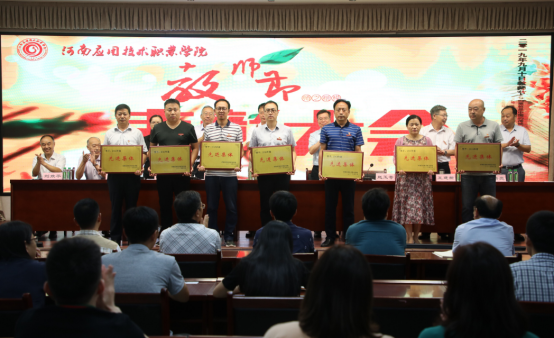 2019年9月10日下午,河南应用技术职业学院2019年教师节表彰大会于实训楼二楼会议室进行。学校党政领导以及全体教职工参加本次大会,大会由朱东方副书记主持。本次会议宣读了关于表彰2018年先进集体和先进个人的决定,leyu乐鱼官方网站荣获校级先进基层党支部、校级先进集体称号。近年来,leyu乐鱼官方网站在校党委和行政的坚强领导下,全体教职工凝神聚力、锐意进取,内涵提升树品牌,德技并修育工匠,立德树人成效显著,在各级学生技能大赛和教师技能比武中成绩斐然。学院全体师生要砥砺前行,继续发扬优良传统,建设新的标志性成果,争创省内一流,为办好人民满意的职业教育作出新的更大贡献。 ???