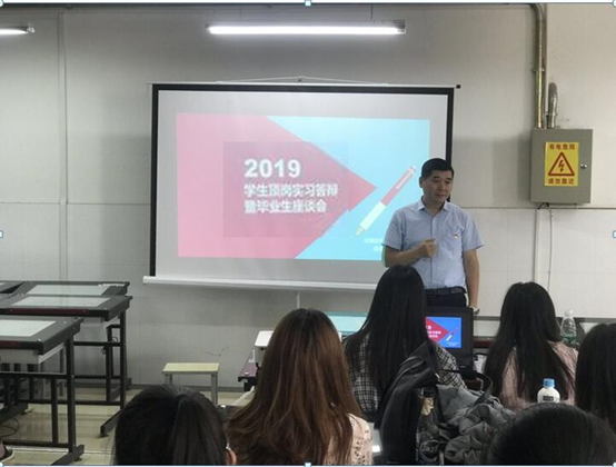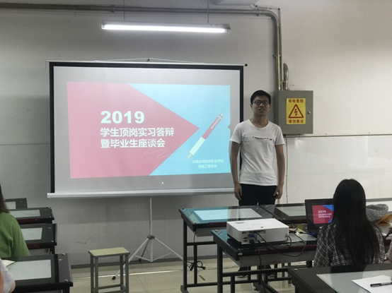 2019年6月10日上午,leyu乐鱼官方网站16级毕业生在E403进行了顶岗实习答辩暨毕业生座谈会。王雷院长和杨明杰书记参加了会议,会上网络专业的安海伟、计算机专业的万超和视传专业的徐辉等同学代表16级毕业生进行了现场答辩,顶岗实习指导教师张振平老师、王碧琳老师与学生进行了提问和交流。通过本次答辩和座谈会,学院获取了学生在顶岗实习期间的心得和感受,对leyu乐鱼官方网站的专业建设和顶岗实习管理工作提供了第一手的信息。