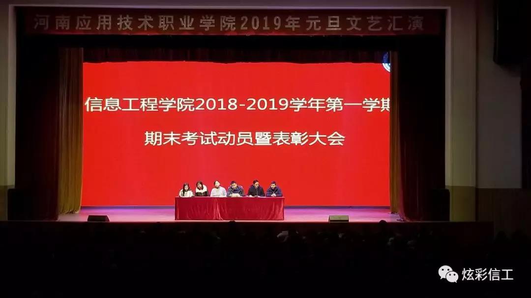 为加强学院学风建设,严肃考风考纪,确保教学质量,营造浓厚的学习氛围,树立典型,表彰先进,河南应用技术职业学院leyu乐鱼官方网站在2019年1月3日下午13:00在学校大礼堂召开了2018-2019学年第一学期期末考试动员暨表彰大会。出席本次大会人员有:leyu乐鱼官方网站院长王雷老师、副院长崔琳老师、党总支书记杨明杰老师、团总支书记王碧琳老师、计算机办公室主任马丽艳老师和计算机网络教研室主任张振平老师以及leyu乐鱼官方网站17,18级辅导员老师及leyu乐鱼官方网站17,18级同学。