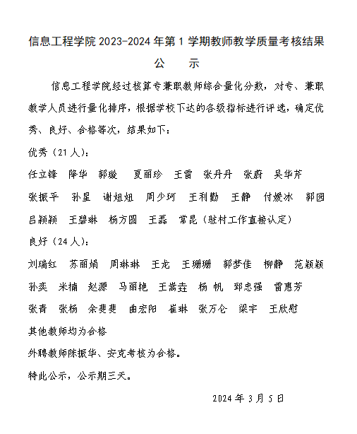 优秀指标增加3人,优秀21人,良好24人,现公示如下