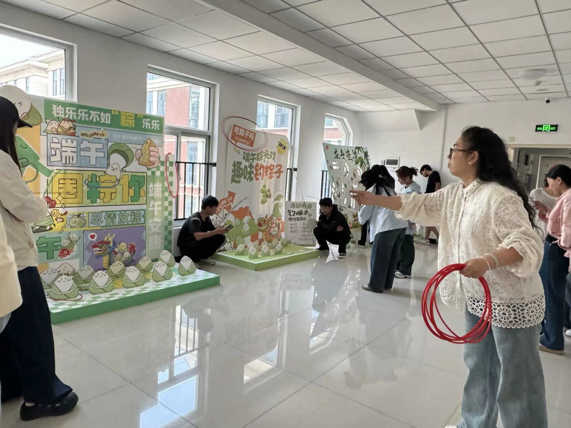 参加完套粽子游戏的老师分享道:“这个活动真不错,不仅让我们在忙碌的教学工作中得到了放松,还让我们更深入了解了端午节的文化。而且这游戏看着简单,真玩起来挺考验耐心和技巧的。”