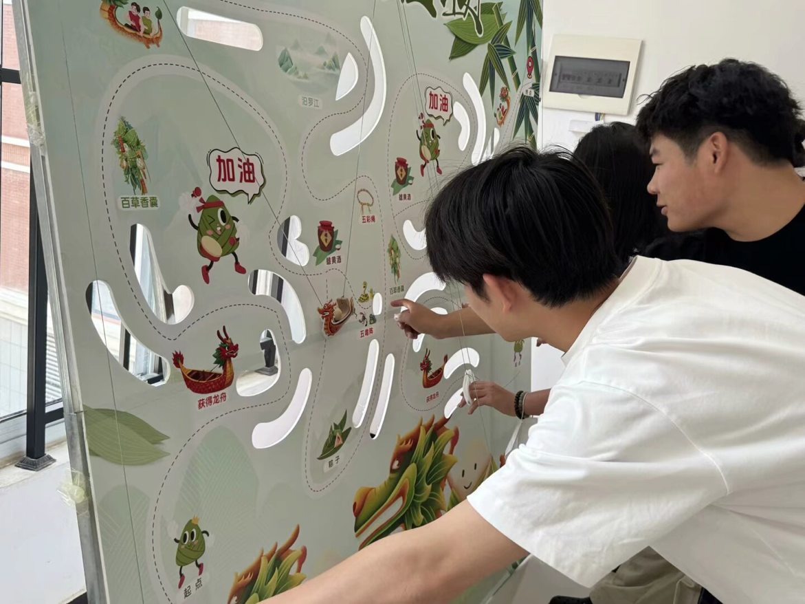 活动搭建了钓粽大作战、套粽子、龙舟竞渡趣味小游戏,邀请路过的师生前来体验。参与活动时,师生们你追我赶、奋勇争先,大家凭借出色的手眼协调力,赢得现场阵阵欢呼和呐喊声,现场氛围热烈活跃。