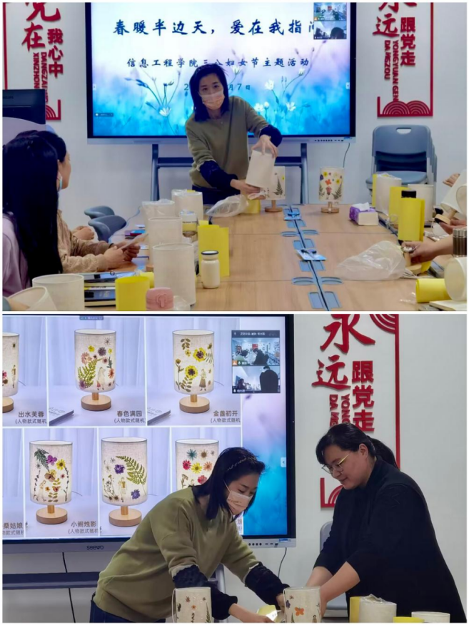 三月是春意与浪漫共存的日子,教师是点亮心灵的职业。为庆祝三八国际妇女节到来,更好地展现leyu乐鱼官方网站女教职工风采,同时关爱和答谢女教职工辛勤努力为leyu乐鱼官方网站做出的贡献,进一步激发工作热情和创造力,提升组织凝聚力,leyu乐鱼官方网站于3月7日下午分别在东、西校区同时开展“春暖半边天,爱在我指间”三八妇女节压花台灯DIY活动。