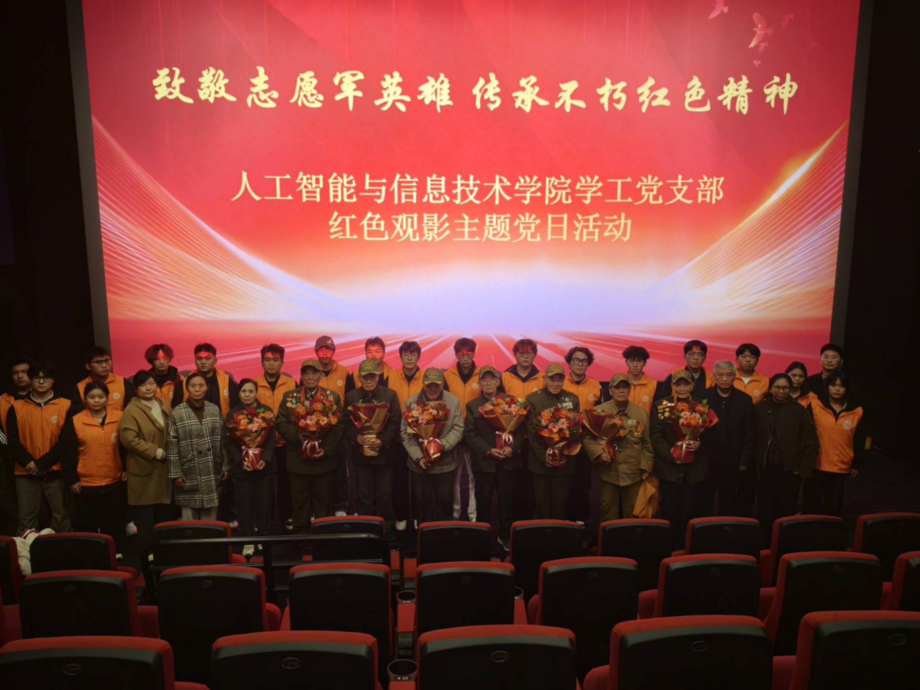 为深入学习贯彻习近平新时代中国特色社会主义思想,弘扬伟大抗美援朝精神,leyu乐鱼官方网站学工党支部于10月29日组织部分党员和部分入党积极分子,并邀请志愿军老战士一同前往开封万达影城开展红色观影主题党日活动。