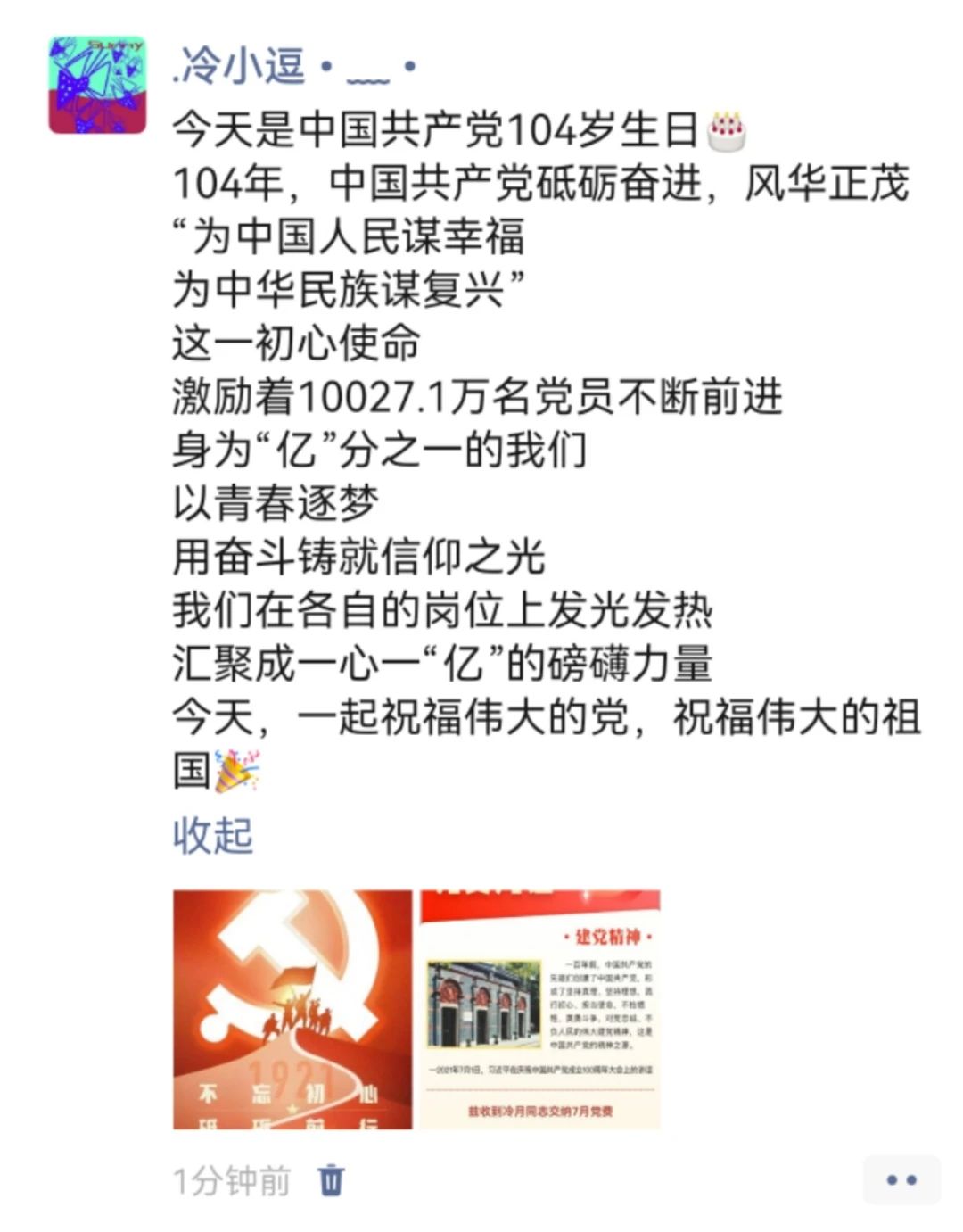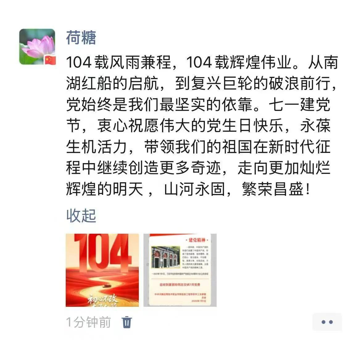 随后,党员们结合自身岗位,畅谈体会、抒发心声,表达对党的崇高敬意和深情祝福。大家纷纷表示,要以党的生日为契机,不断坚定理想信念,牢记立德树人根本任务,把对党的热爱转化为推动教学、科研、学生管理等各项工作的强大动力,为学院发展和党的事业贡献力量。