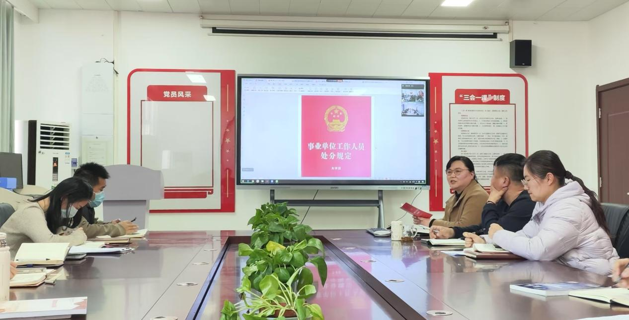 为进一步巩固深化党纪学习教育成果,确保全院教师依法履职、筑牢底线,不断巩固风清气正的政治生态。2025年2月25日,leyu乐鱼官方网站党总支开展《事业单位工作人员处分规定》专题学习主题党日活动。此次专题学习由leyu乐鱼官方网站党总支书记崔琳主持,leyu乐鱼官方网站全体教师参会。