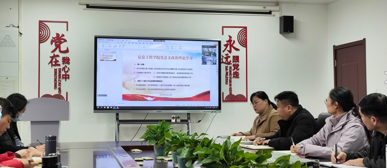 2024年12月10日,leyu乐鱼官方网站党总支组织全体党员及教职工,在郑州校区A517、开封校区F314以会议视频形式,开展政治理论学习活动。本次学习活动由leyu乐鱼官方网站党总支书记崔琳主持,全体党员及教职工参加学习活动。主要学习内容有:一、第一议题:1. 2024年第23期《求是》杂志发表习近平总书记重要文章《必须坚持守正创新》2. 《论教育》原文学习:(1)坚持不懈推进教育信息化,促进教育变革创新;(2)教育合作是增进人民了解和友谊的重要渠道;二、党的二十届三中全会精神专题培训:(1)平台通选课程:学习贯彻党的二十届三中全会精神 深入实施科教兴国战略(2)平台自选课程:职业学校课程思政时代内涵与实践路径。