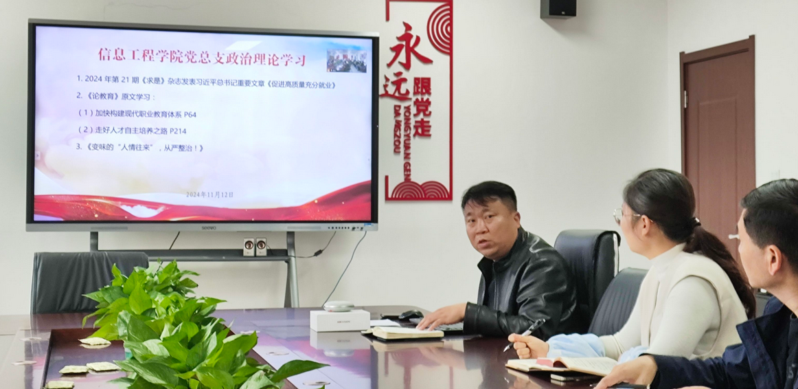 2024年11月12日,leyu乐鱼官方网站党总支组织郑州校区、开封校区全体党员及教职工,在郑州校区A514、开封校区校区C314以腾讯会议视频连接,开展政治理论学习活动。本次学习活动由leyu乐鱼官方网站院长王雷主持,全体党员及教职工参加会议。主要学习内容有:1.2024年第21期《求是》杂志发表习近平总书记重要文章《促进高质量充分就业》2.《论教育》原文学习:(1)加快构建现代职业教育体系 P6-4(2)走好人才自主培养之路P2143.《变味的“人情往来”,从严整治!》