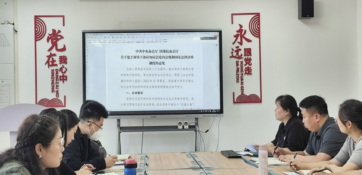 崔琳书记主持会议,带领大家重点学习《中共中央办公厅 国务院办公厅关于建立领导干部应知应会党内法规和国家法律清单制度的意见》。她强调:首先,认真学习党章。把学习党章作为必修课、基本功,深刻理解党章是党的根本大法,是全党必须共同遵守的根本行为规范。用党章规范自己的言行、按党章要求规规矩矩办事,始终在政治立场、政治方向、政治原则、政治道路上同党中央保持高度一致。凡是党章规定党员必须做的,领导干部要首先做到;凡是党章规定党员不能做的,领导干部要带头不做。其次,认真学习党的组织法规。深入学习中国共产党中央委员会工作条例、地方委员会工作条例、纪律检查委员会工作条例等,熟悉掌握党的组织结构、组织体系以及各级各类组织的设置定位、产生运行、职权职责。再次,认真学习党的领导法规。深刻理解坚持和加强党的全面领导的丰富内涵,增强做到“两个维护”的自觉性和坚定性。