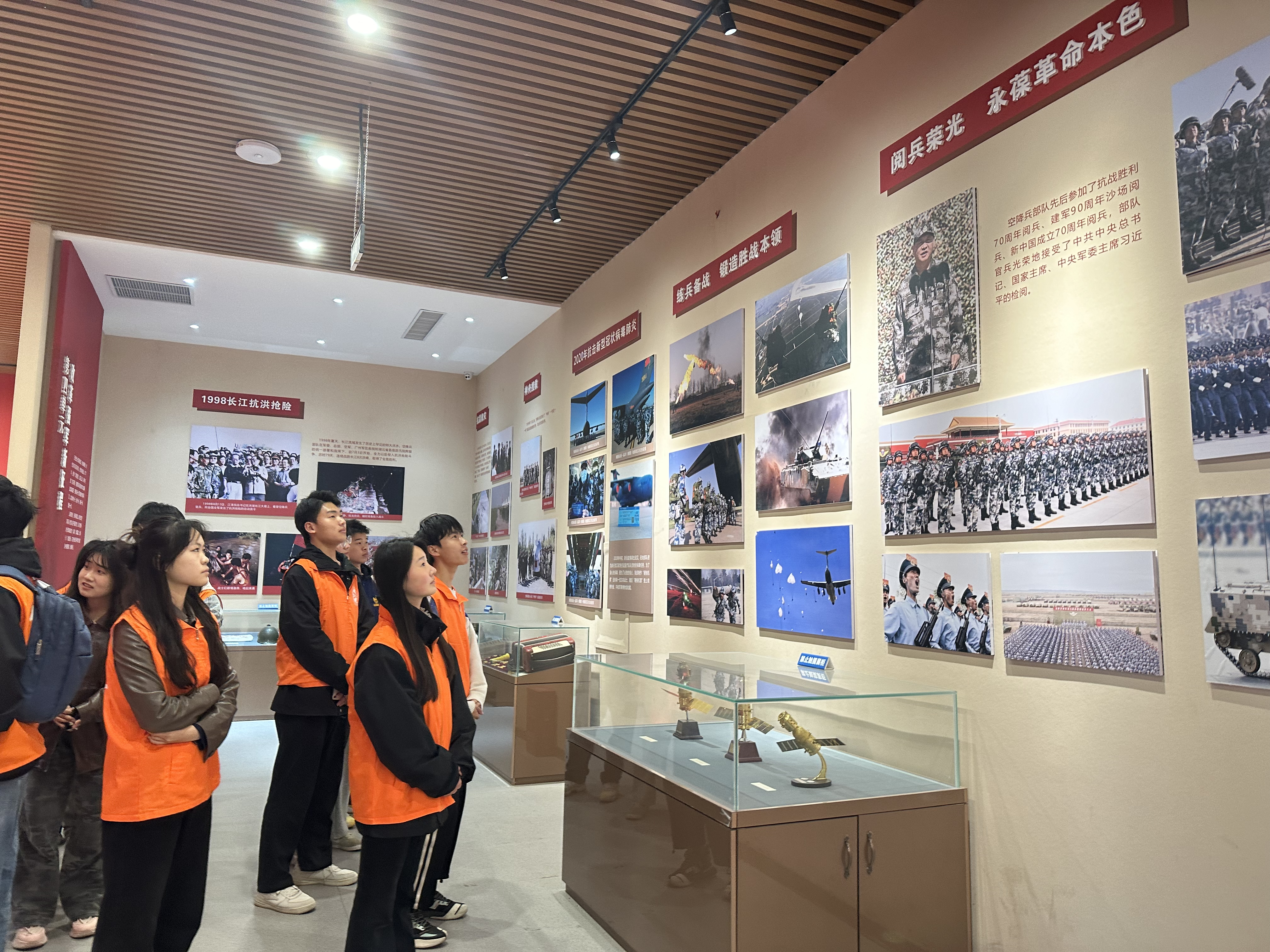 在伞塔印记馆中,师生们依次参观了伞塔与军、伞塔与民、军民融合三个展厅,仔细聆听着关于伞塔的落成与重塑,深入了解空降兵部队成立与发展的艰辛过程,领略到了亚洲第一塔屹立开封的前尘往事以及伞塔国防教育基地的诞生和开封军民鱼水情深等诸多感人故事。
