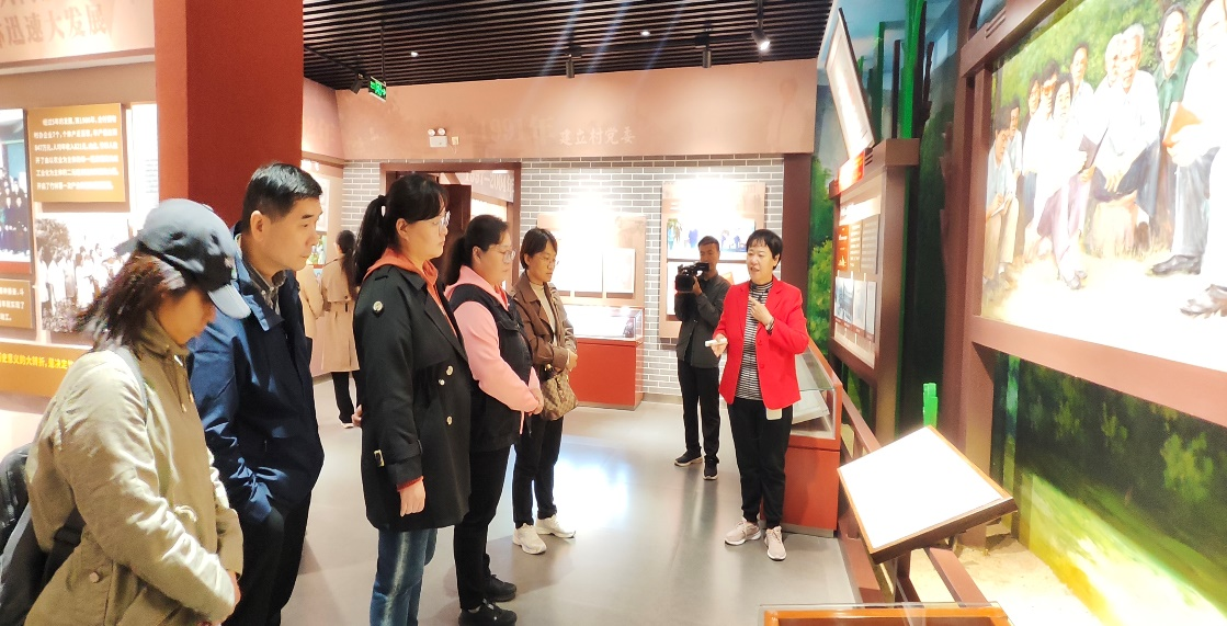 第二阶段:竹林镇参观学习。全体党员教师乘车来到竹林镇北山公园,参观了竹林博物馆。在各个展厅中,通过讲解员的讲解,使大家了解到竹林镇引水工程的曲折和竹林镇人民创业的艰辛,更加佩服竹林人攻坚克难,敢为人先的无畏精神。随着讲解员的生动描述,理解了峥嵘岁月、出彩今朝、锦绣前程等多个展厅的图像资料背后的故事。竹林镇几十年的发展历程像一副画卷慢慢展开,大家深刻感受到了“爱竹林、比贡献、谋发展、勇创业、讲文明、共富裕”的竹林精神,并被竹林人民自力更生、艰苦奋斗的伟大精神所折服,也深切感受到党的领导能给人民群众创造幸福生活。