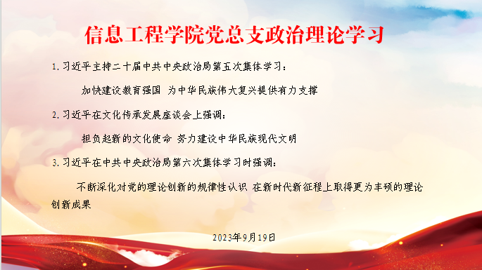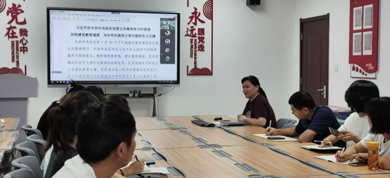 2023年9月19日,leyu乐鱼官方网站党总支组织东西校区全体党员及教职工,在西校区A514、东校区以腾讯会议视频连接,开展政治理论学习活动。本次学习活动由leyu乐鱼官方网站党总支书记崔琳主持,全体党员及教职工参加会议。