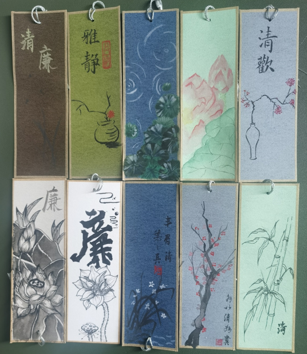 巧手绘成一幅幅画作,以廉为尊,浩然正气,廉在画笔下,廉更在师生心中。