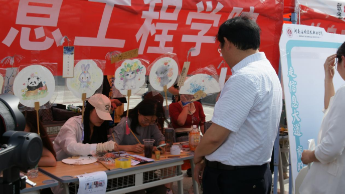本次活动利用视觉传达设计和动漫制作技术专业艺术特长,展示布袋定制绘画、纸扇设计、动漫形象设计等技能,展现富有职教专业特色、技术技能特色的“绝技”,同时利用趣味性活动引导和推动学生对学习的兴趣。活动充分体现了学生的学习成果。