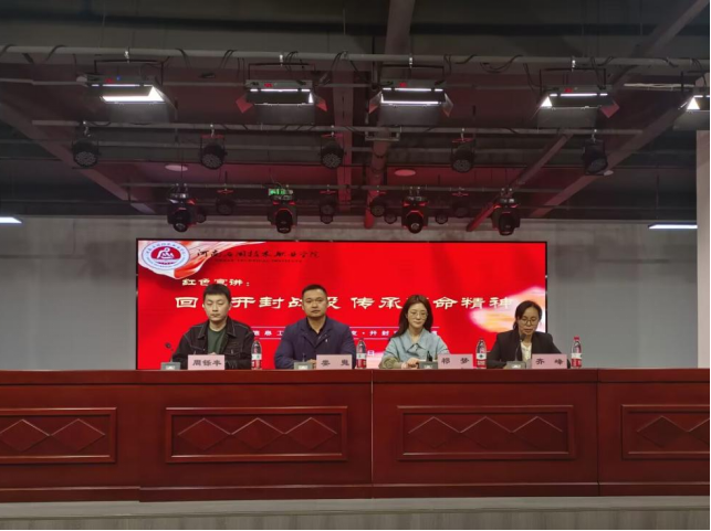 为传承红色基因赓续精神血脉,大力宣传习近平新时代中国特色社会主义思想主旋律,4月18日下午,leyu乐鱼官方网站党总支邀请开封博物馆社教部宣讲团到校开展以“回顾开封战役 传承革命精神”为题的红色精神宣讲活动。leyu乐鱼官方网站副院长齐峰、开封博物馆社教部主任祁梦、宣讲员娄嵬、周铄丰及学院教师参加活动,活动由齐峰主持。