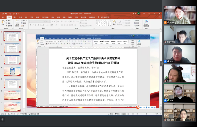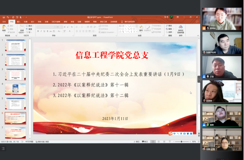 会议第二项,崔琳梳理总结2022年学院党建工作要点及廉政工作落实情况,传达并组织学习学校纪委近期下发的三个重要文件。会议中指出,按照《河南省纪委监委驻省教育厅纪检监察组关于2023年元旦春节期间纠”四风”树新风工作提示》及学校纪委《关于坚定不移严之又严落实中央八项规定精神 确保 2023 年元旦春节期间风清气正的通知》精神,leyu乐鱼官方网站党总支在2022年12月29日、31日组织全体教职工进行了相关文件学习,在2023年1月4日、6日分两次学习了违反中央八项规定典型案例、违反教师职业行为典型案例,并在1月5日采用新媒体形式进行了集体廉政提醒谈话。1月11日上午,组织全体教职工学习《习近平在二十届中央纪委二次全会上发表重要讲话》、2022年《以案释法》第十一辑、2022年《以案释法》第十二辑,崔琳书记再次强调元旦春节既是“人情关”,更是“廉洁关”,要求每一位教职工在元旦春节期间牢记校纪委通知精神,纠四风树新风,过一个廉洁祥和文明的假期。