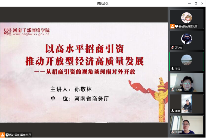 实施“十大战略”是省委立足加快建设现代化河南,持续落实习近平总书记视察河南重要讲话重要指示的具体行动,是实现“两个确保”奋斗目标的战略路径。为引导全体党员关注省委部署的关键性、战略性、全局性工作,为现代化河南建设贡献教育力量,11月29 日下午,leyu乐鱼官方网站党总支组织全体教师集中观看河南干部网络学院11月份课程《以高水平招商引资推动开放性经济高质量发展》,本次课程由河南省商务厅孙敬林主讲。