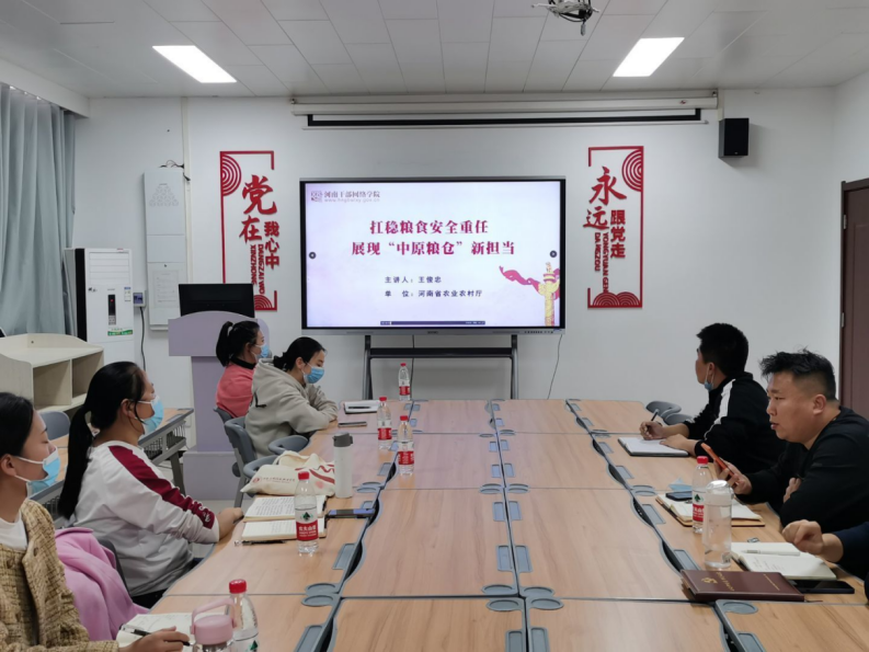 实施“十大战略”是省委立足加快建设现代化河南,持续落实习近平总书记视察河南重要讲话重要指示的具体行动,是实现“两个确保”奋斗目标的战略路径。为引导全体党员关注省委部署的关键性、战略性、全局性工作,为现代化河南建设贡献教育力量,10月19日下午,leyu乐鱼官方网站党总支组织全体党员教师集中观看河南干部网络学院10月份课程《扛稳粮食安全重任 展现“中原粮仓”新担当》,本次课程由河南省农业厅副厅长王俊忠主讲。