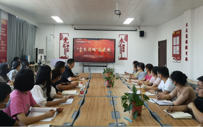 为深入贯彻学校《关于开展学习“十大战略”主题党课活动的通知》精神和要求, 2022年6月14日下午leyu乐鱼官方网站党总支组织东西校区全体教师,分别于西校区A514和东校区519机房开展“十大战略”专题学习。本次活动由leyu乐鱼官方网站团总支书记赵源主持。