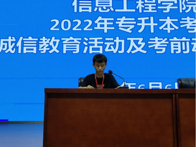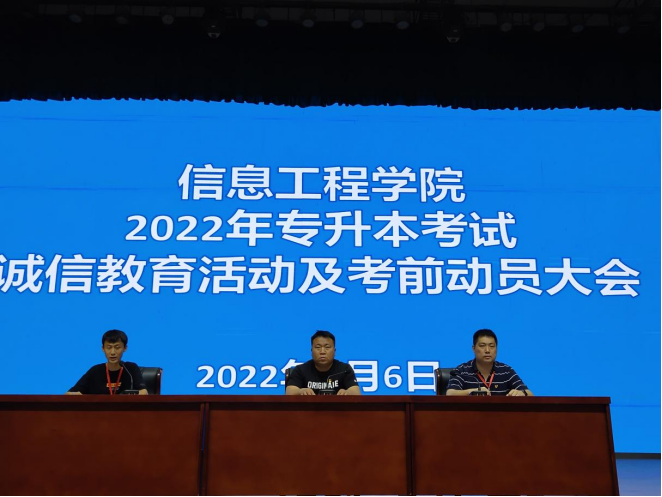 为弘扬诚信、守信这一中华民族的传统美德,培养学生“诚信”的优良品质,严肃考风考纪。按照河南省教育考试院关于印发《河南省2022年普通高校招生考试考务工作实施细则》文件精神,根据学校安排,leyu乐鱼官方网站于2022年6月6日下午15时,在学生活动中心开展2022年专升本考试诚信教育活动及考前动员大会。leyu乐鱼官方网站院长王雷院长、团总支书记赵源书记、19级辅导员及全体专升本考生参加了此次活动。