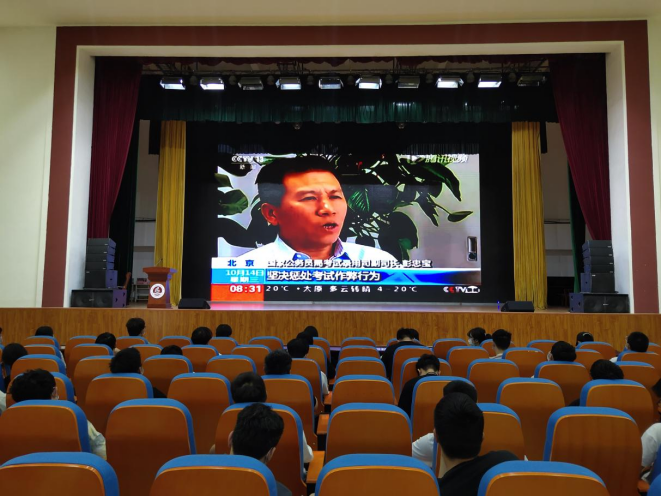 之后,全体考生一同观看了《刑法修正案(九)》,《教育法》警示宣传片,以达到更好的警示作用。