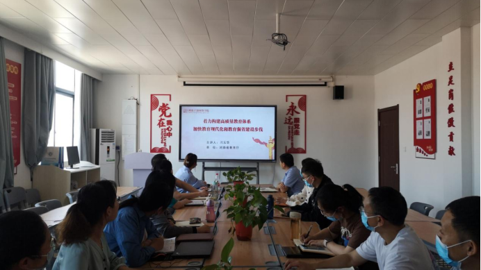 会上,全体教师共同观看河南省教育厅副厅长刁玉华主讲的《着力构建高质量教育体系加快教育现代化和教育强省建设步伐》专题讲座。讲座从国际、国内和河南等几个维度,系统回顾了高等教育的发展历史,梳理了高等教育发展的历史脉络,深刻分析了我省高等教育发展的现状和面临的新形势、新任务,提出了今后一个时期我省高等教育事业改革发展的一系列新思路、新举措。教师们认真聆听,并做了笔记。