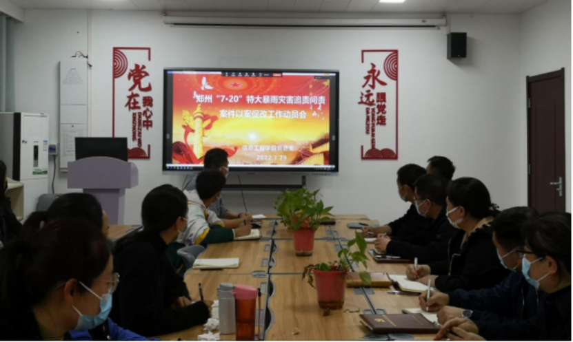 为深入贯彻落实十九届中央纪委六次全会、十一届省纪委二次全会精神,根据leyu乐鱼官网《开展郑州“7·20”特大暴雨灾害追责问责案件以案促改工作方案》的通知要求。2022年3月29日下午,leyu乐鱼官方网站党总支组织全体教师通过网络视频召开学习动员大会。本次会议由leyu乐鱼官方网站党总支书记楚斌主持。