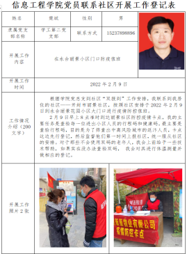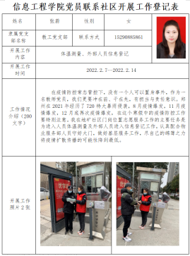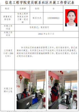 leyu乐鱼官方网站党总支全体党员积极落实到社区(村)报告,填写党员联系社区开展工作登记表,建立工作台账,将工作规范化,细致化。党员同志们有的在社区门口进行出入车辆登记,有的积极协助社区工作人员场所消毒,有的负责楼栋整体的防疫卫生把控,有的帮助社区人员进行资料整理,真正做到了多点开花,全面发力,把党员身份亮了出来,把能力体现到了实处。
