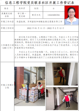 根据《中共河南应用技术职业学院委员会关于深化在职党员到村(社区)报到制度助力疫情群防群控工作的通知》(应院党字〔2022〕6号)文件要求,leyu乐鱼官方网站党总支积极对接社区,组织学院党员教师积极到社区(村)报到,充实群防群控力量。