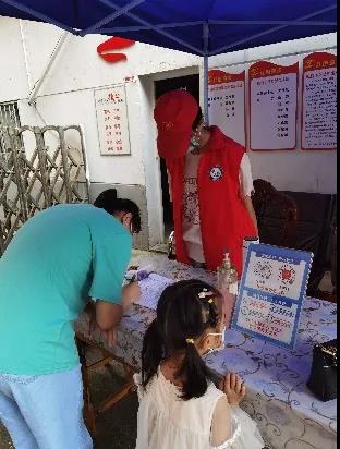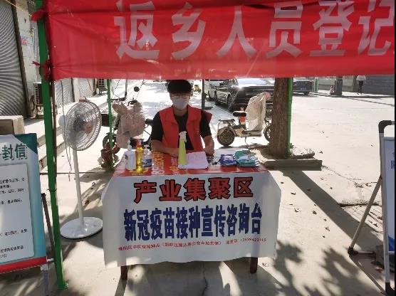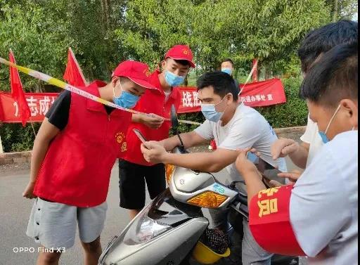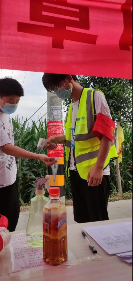 2021年8月9日,在漯河市舞阳县马村乡慕庄村进行的核酸检测中,该同学自愿站岗,帮助工作人员维持秩序,对预约前来核酸检测的群众进行信息登记和测量体温,引导人员进行核酸检测。