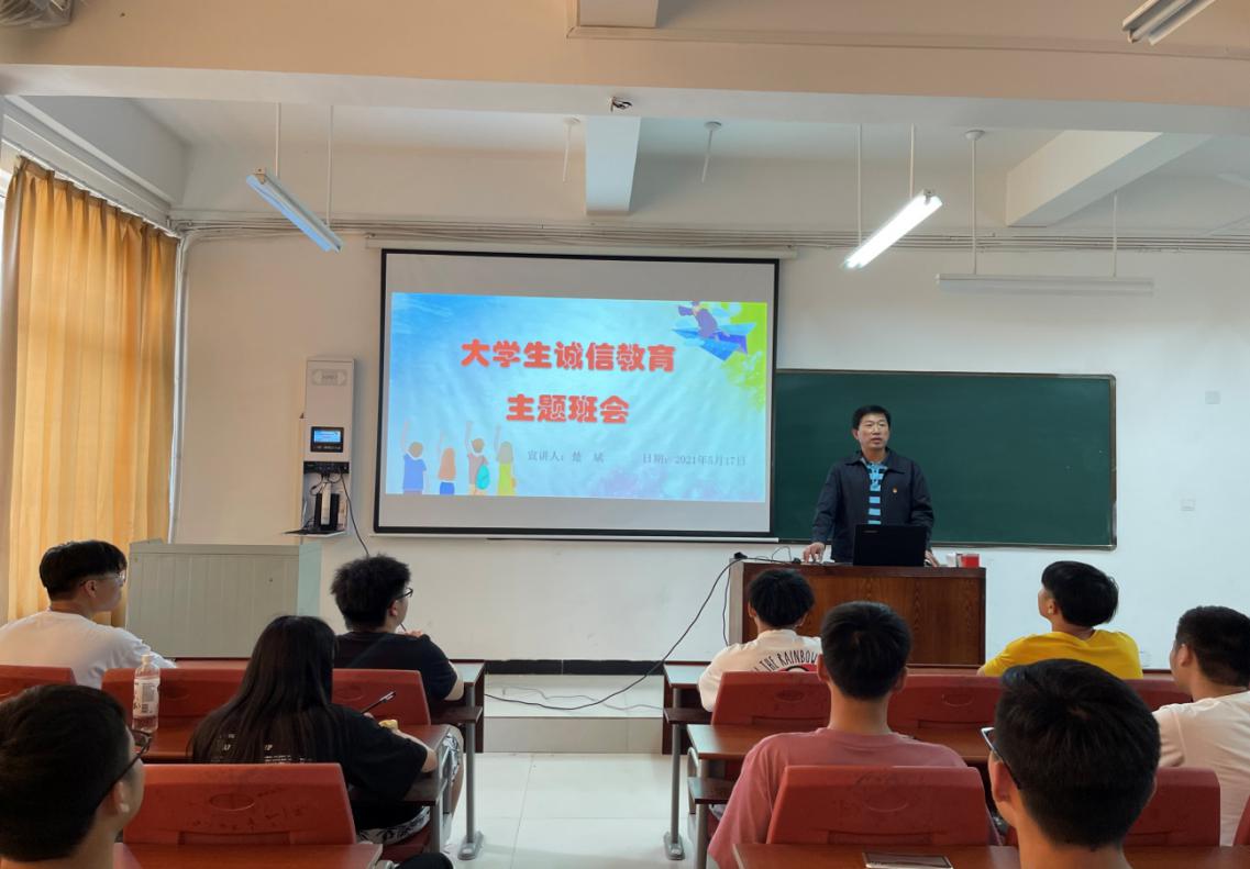 为贯彻学校“学党史 悟思想 办实事 开新局”党史学习教育要求,认真落实“三进三带”精神,按照leyu乐鱼官方网站党总支党员联系班级工作制度要求,5月17日中午,学院党总支书记楚斌在东校区教学楼102教室与所联系的5G2001班召开了主题为“大学生诚信教育”主题班会。