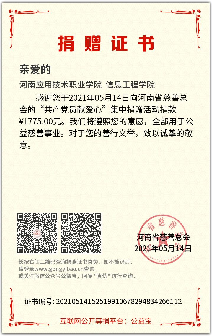 为期三天的义卖活动,共有18位教职工和52名学生购买自己心爱的作品,义卖资金总计1775元。全部以leyu乐鱼官方网站党总支的名义一次性捐助到河南慈善总会“共产党员献爱心”活动,用于“助力脱贫攻坚·点亮学子希望”慈善助学项目。