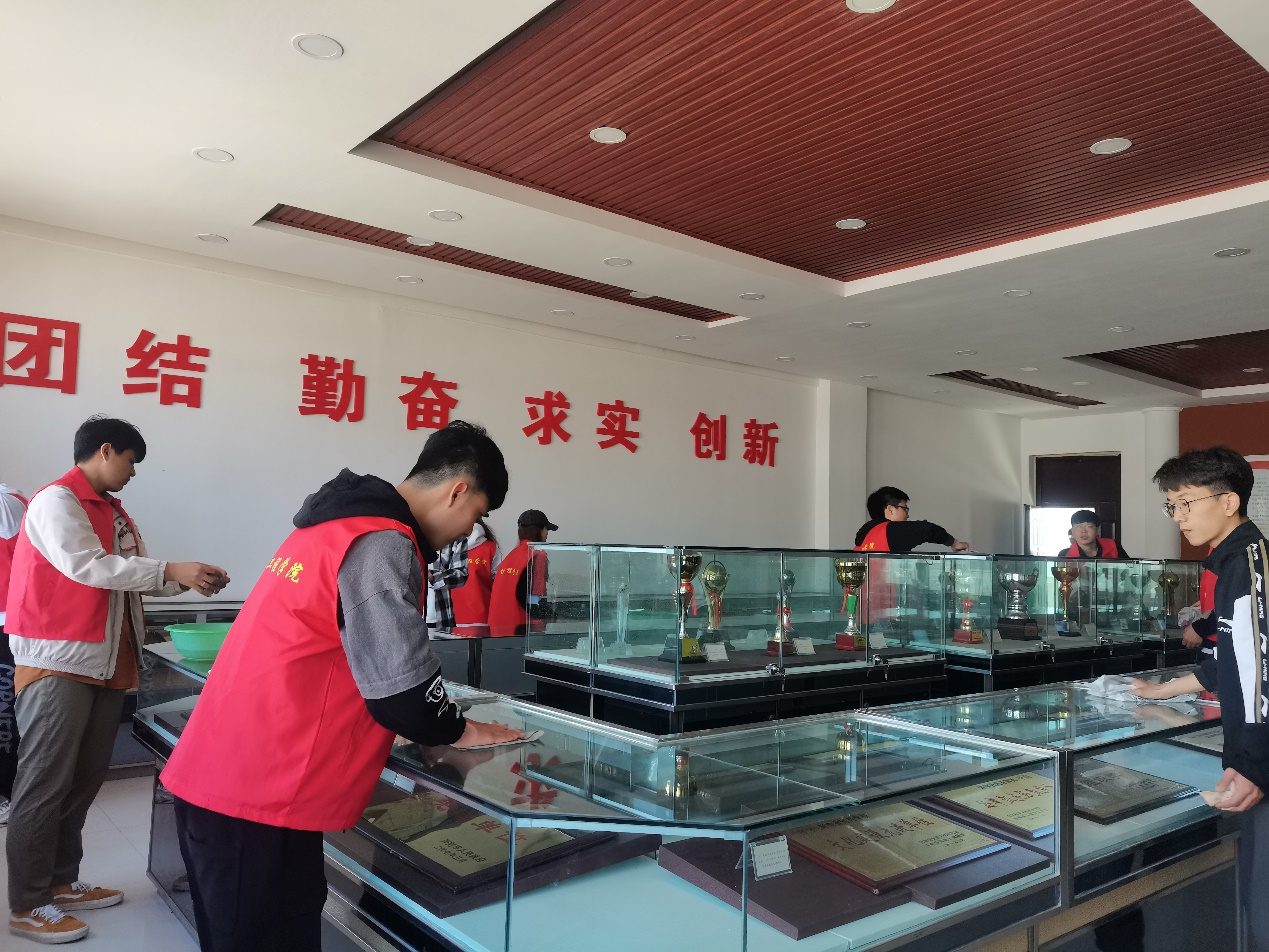本次志愿者队伍由leyu乐鱼官方网站团学会干部及入党积极分子组成,他们准时到达校史馆现场,有序进行卫生打扫,分工明确,相互协助,充分的发挥了先锋模范带头作用。