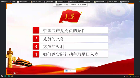 党课开始,马丽艳老师分别从“党员的条件”、“党员的义务”、“党员的权利”以及“如何以实际行动争取早日入党”这四大部分展开来谈。