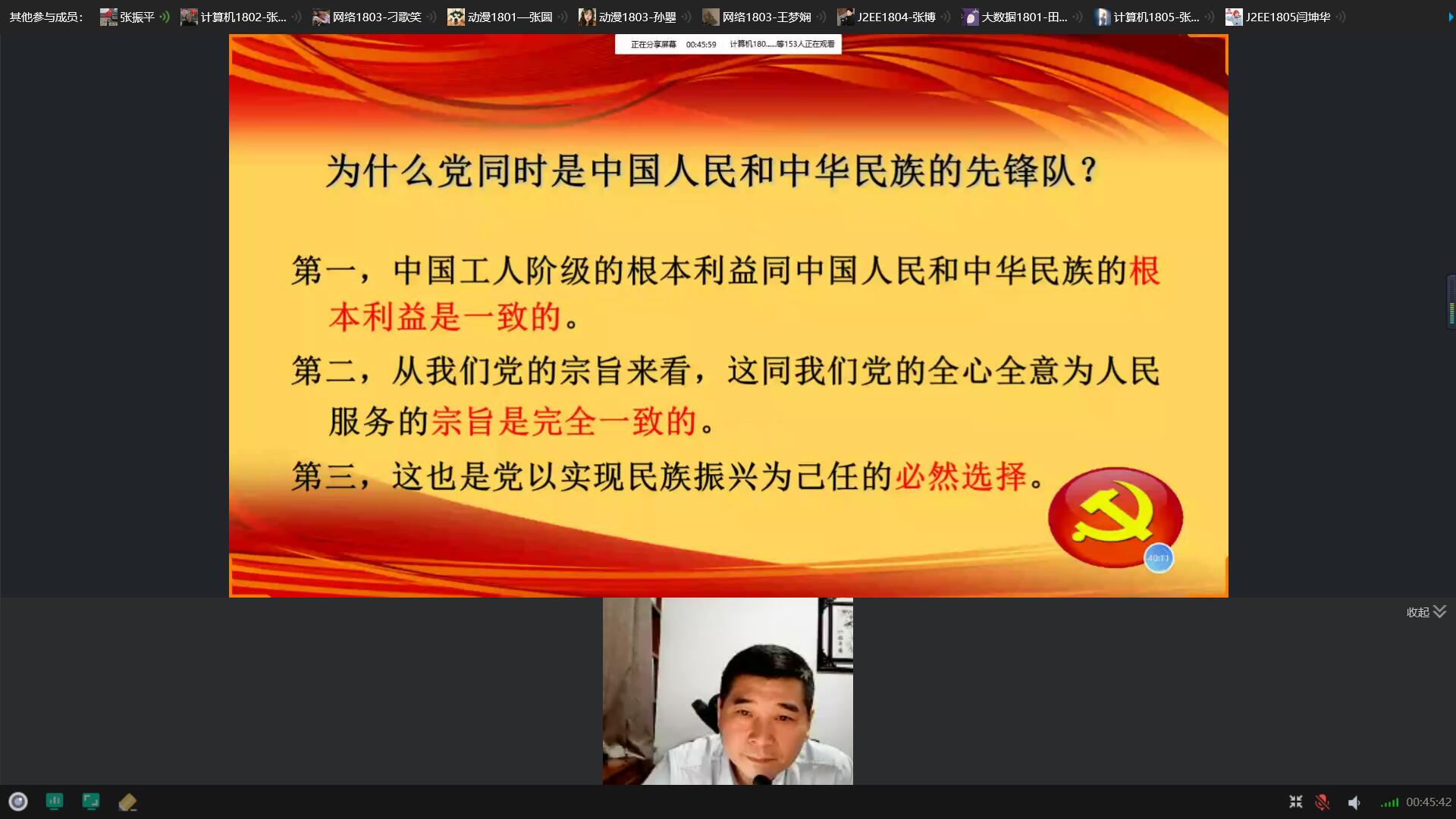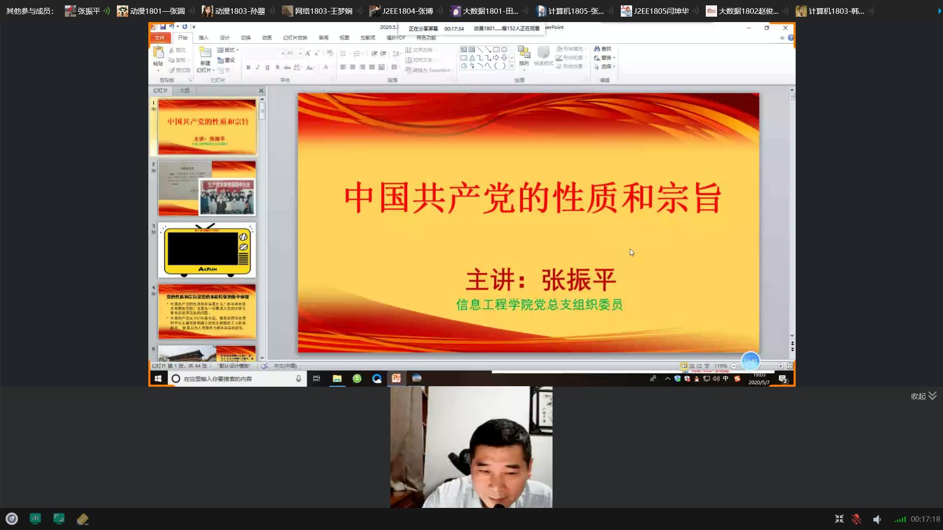 为加强学生入党积极分子的党性意识,深入了解党的性质和根本宗旨。2020年5月7日晚,leyu乐鱼官方网站党总支组织委员张振平老师通过QQ群屏幕共享为154名入党积极分子讲述了党课培训第三讲《党的性质和根本宗旨》。