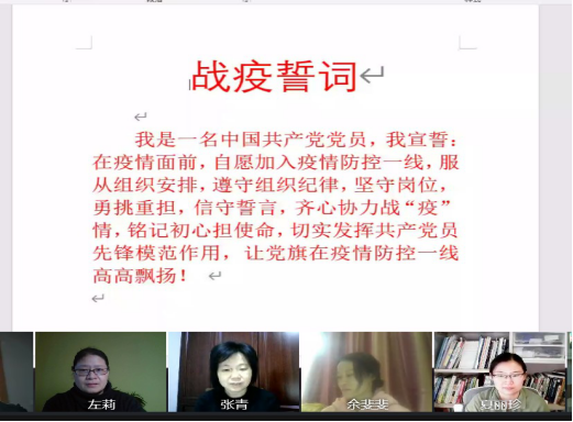 会议的第二个议程是全体党员认真宣读“战疫誓词”。